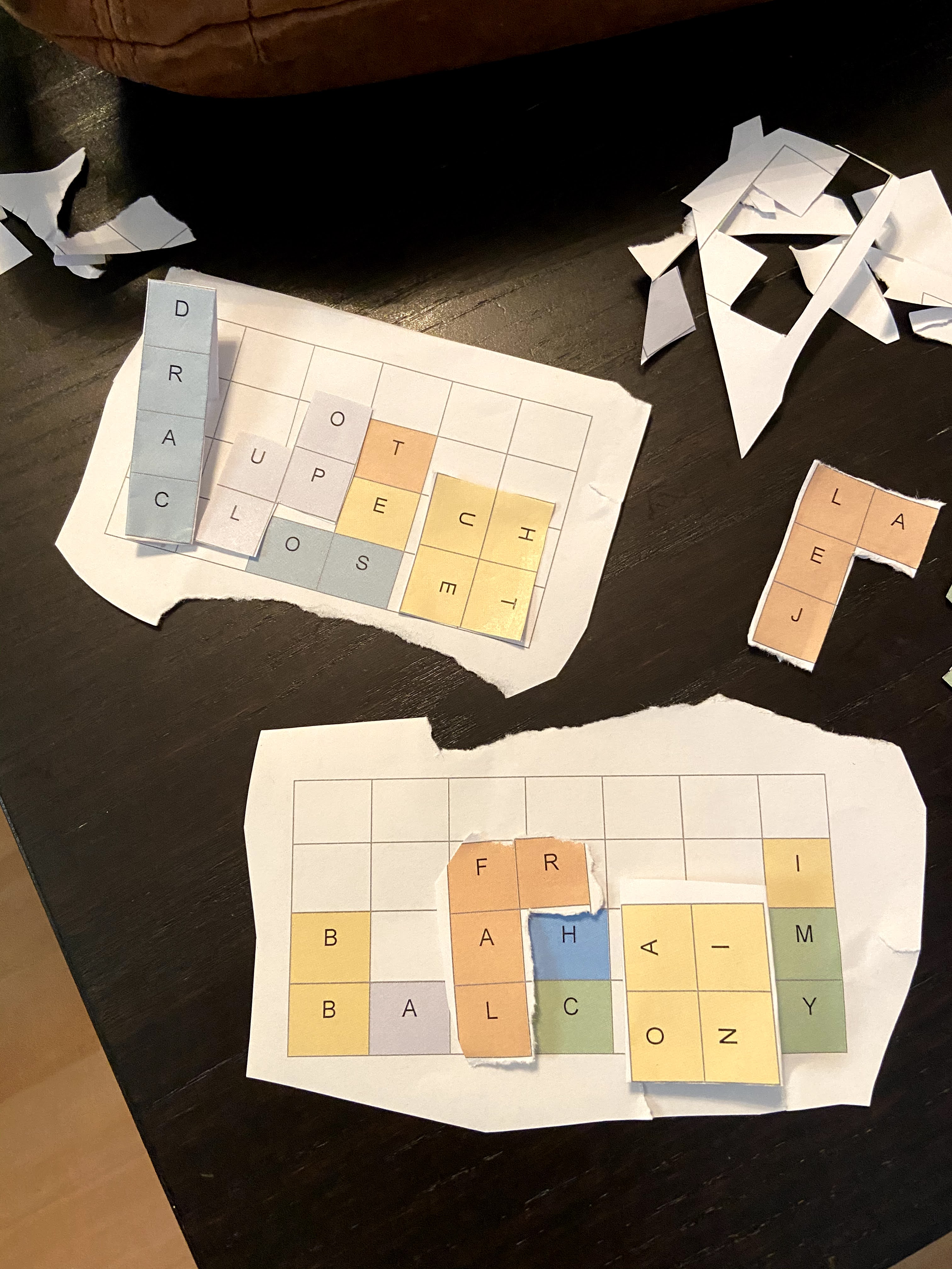 The team started looking throughout the apartment. Eventually, they found all the envelopes and scraps of paper I hid around the place. Then they put together the Tetris puzzle. It alluded to a zombie infestation and rumors of an experimental cure.