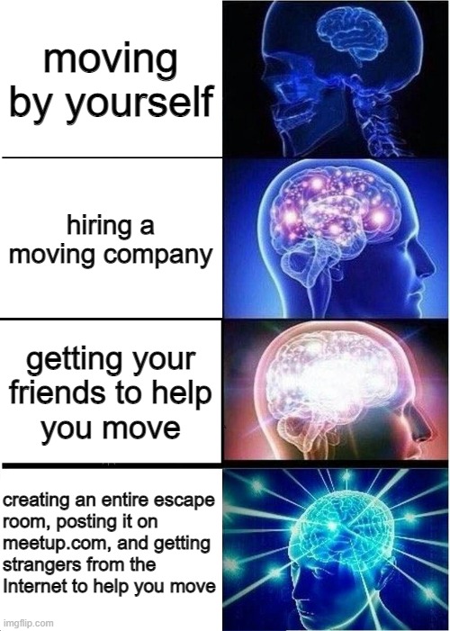 “Moving is such a hassle,” I complained. “I should just post a meetup event and let random people help me move.”